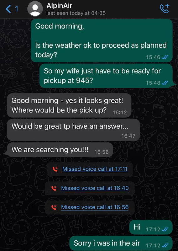 Determined to still make paragliding happen for my wife, I commenced negotiation with Marc, the coordinator from AlpinAir. I asked him if we could skip the booking fee, to pay in full when he picks Bel up for the paragliding session in the morning. He was hesitant, which was understandable because for each tandem paragliding guest he takes in he has to take a sizeable risk. He would have to arrange and pay for a lead glider, equipment, and transportation to ferry everything to the jump site. If we were to skip the booking fee and not turn up, he would incur significant losses. In a bid to earn his trust, I shared with him our address, when we are staying until, and even offered to come by in the morning to pay in advance. Thankfully he agreed to just having Bel pay the full amount after the activity and thus we arranged for the pickup time and location.