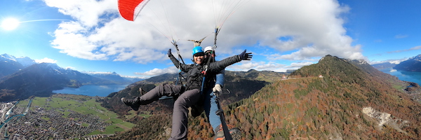 When I regained my breath and poise, I lose them again to the jaw-dropping sight underneath. It was overwhelming to say the least. There was a majestic horizon of Bernese Alps where I was just at Jungfraujoch the previous day. There was the intersection of sapphire blue lakes and emerald valley, Interlaken. Then there was the fact that I was whizzing down at terminal velocity.