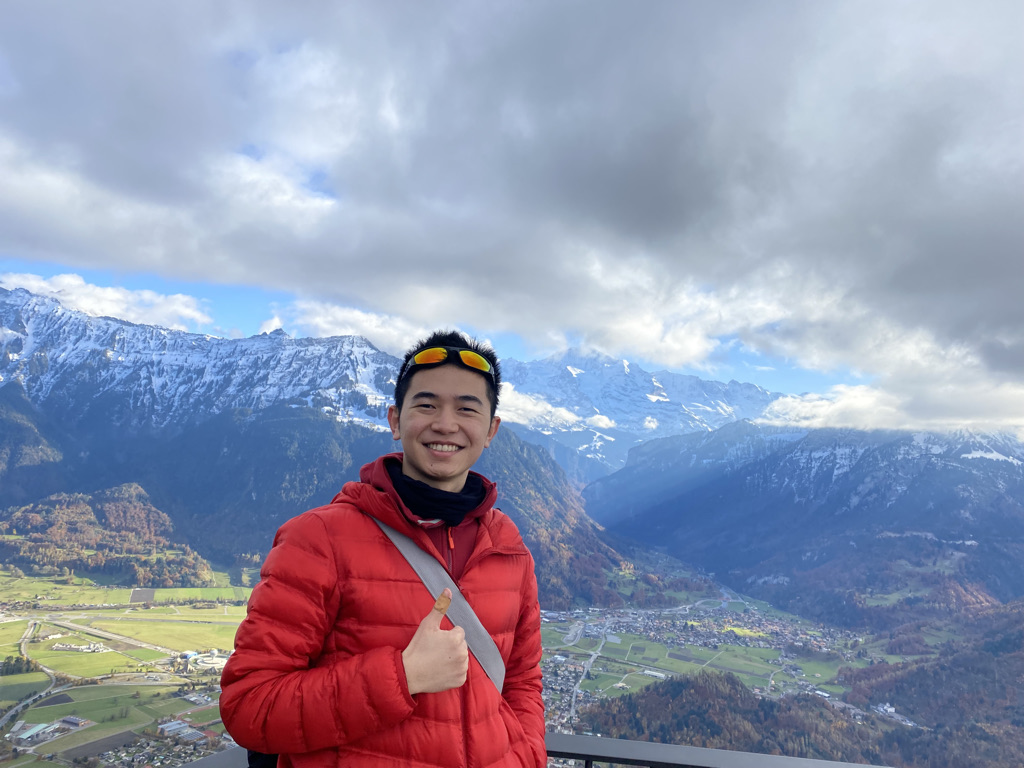 Now, after the almost traumatic skydiving experience, Bel and I were going to recharge with some cheese. We took the Harderbahn; a funicular that brought us 735 metres up to Harder Kulm. It was quite cloudy, but those clouds did little to the picturesque vista before us.