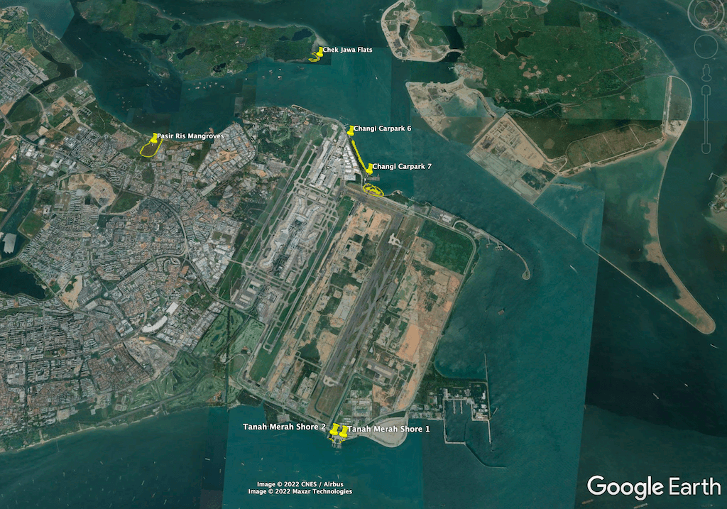 For Singapore spots, I can confirm that Changi beach intertidal hotspot Is along this stretch between Changi Carpark 7 & Changi Carpark 6