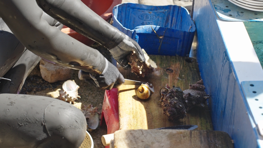 It was impressive how in a short 15 minutes, most of them comes back with a bagful of catch. After the dive, you can buy the fresh catch ON THE SPOT. They will prepare it in front of you, plate it, and you can eat it at their restaurant.