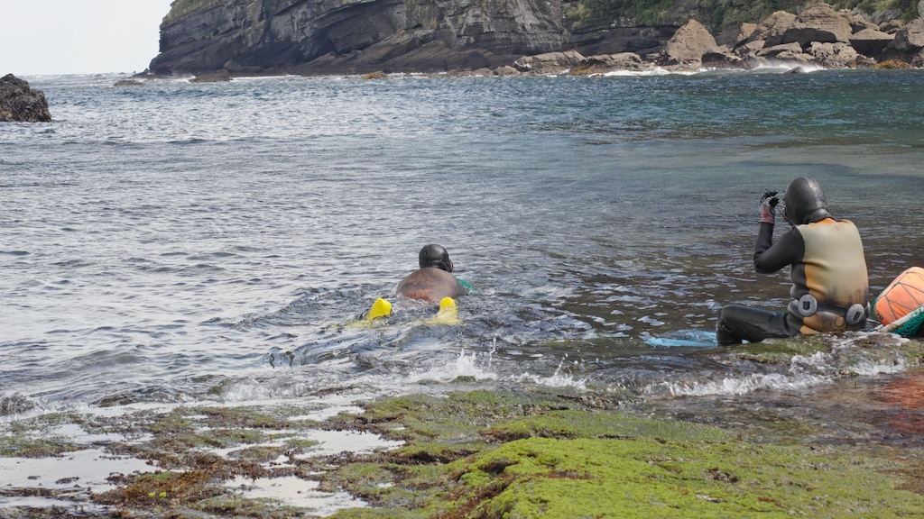 With just their breath, a goggle, a pointy tool, and their ICONIC orange buoy, they’ll dive down and hunt for marine animals like snails, abalones, sea urchins, and even octopuses.