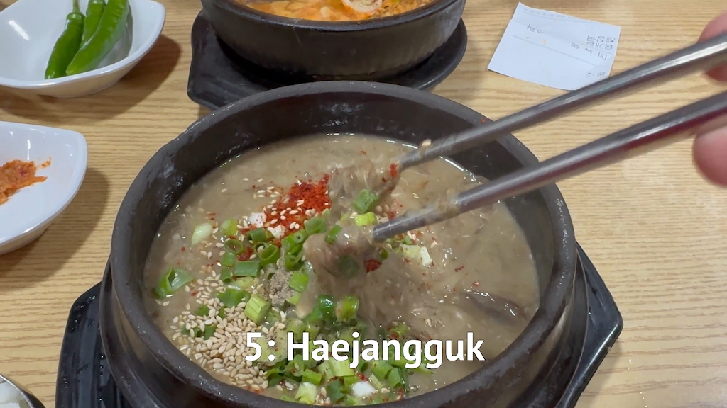 At the 5th place, we have the Haejangguk, also known as the HANGOVER Stew.