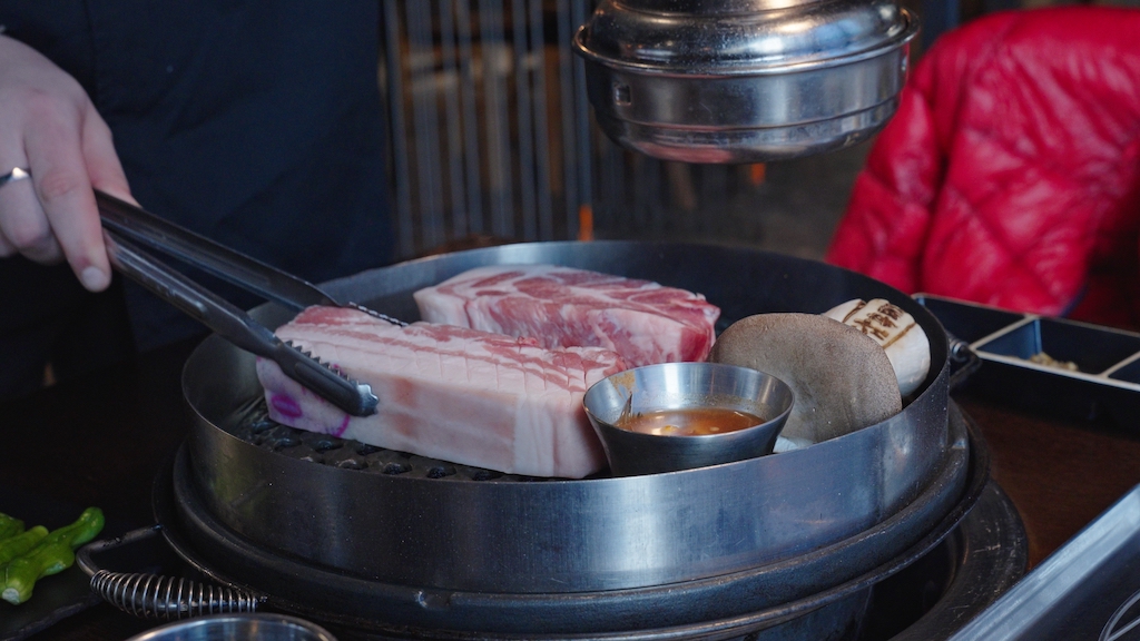 I recommend wrapping the pork in perilla leaves, vegetables, and sauce to balance the juiciness, add more crunch and experiment with more flavors.