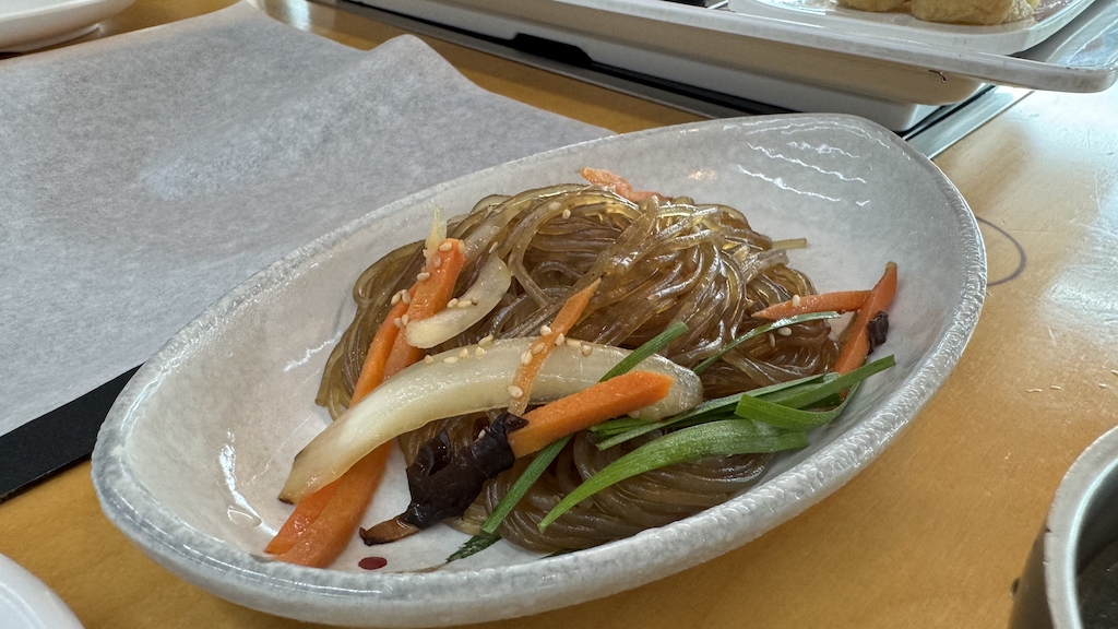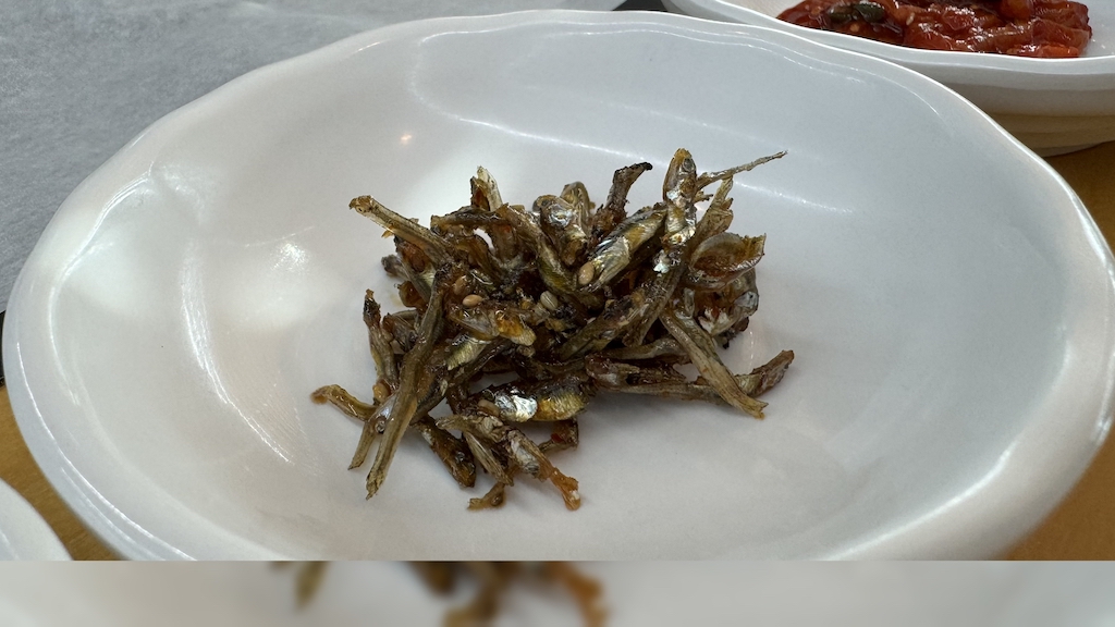 While waiting for the cutlassfish, we started with the side dishes.I really liked their fish cake and JapChae, the anchovies were really tasty to eat with rice.