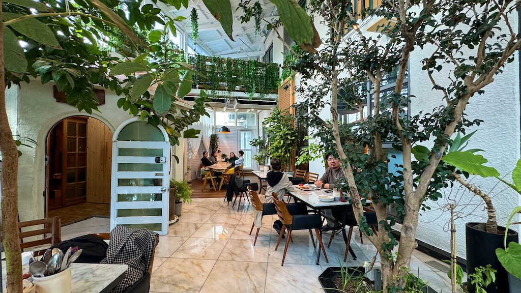 The best part of this cafe is the orange tangerines in the backyard making everything so much more vibrant. The name Gyulkkot Darak actually means a cafe where many tangerines and flowers hang, and I think the cafe executed the meaning of the name pretty well.