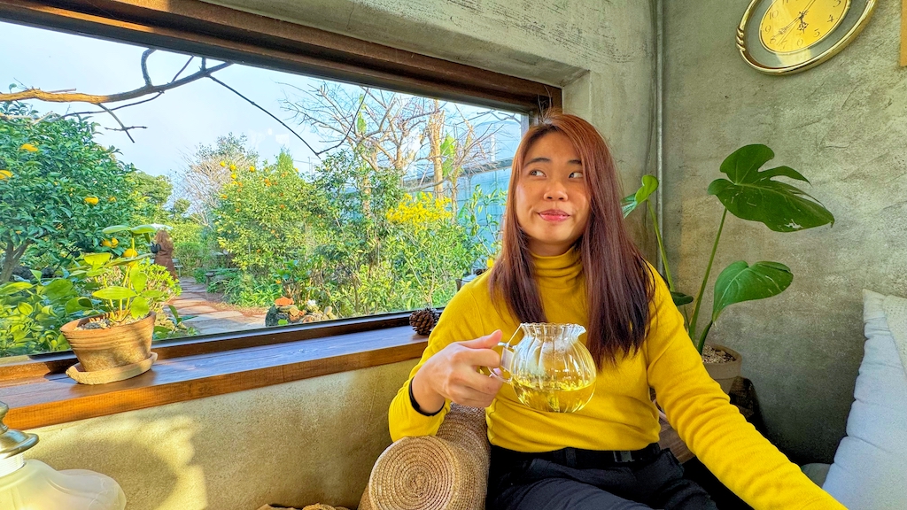 The flower gardens and tea fields all around the cafe feels like a royal palace