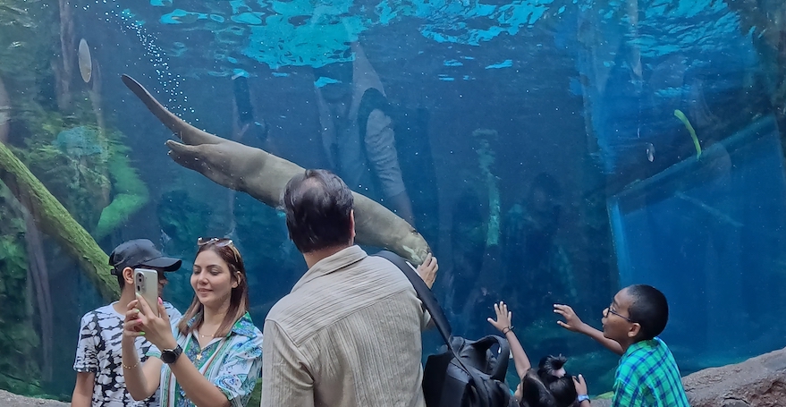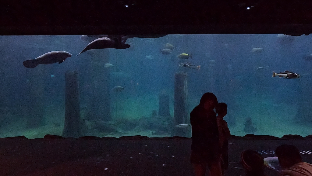 Further in, you’ll find the biggest tank in RiverWonders housing the the manatees. The huge glass wall feels like a view into another world. It feels very impressive when they swim by. My favorite moment was when the crowd dies down and im left alone with these giants swimming overhead. So peaceful and calming to watch them.