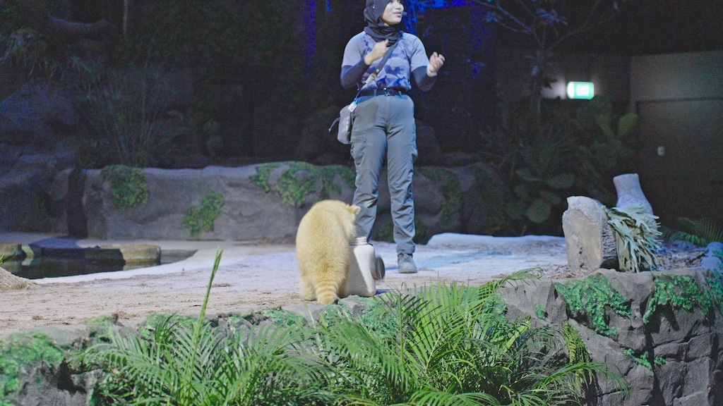 At this point, it’ll be a lot darker than when you first started. The areas within the enclosures are better lit, And with the keeper around, the animals tend to be more active and visible. That’s why you’ll definitely be able to see animals easily