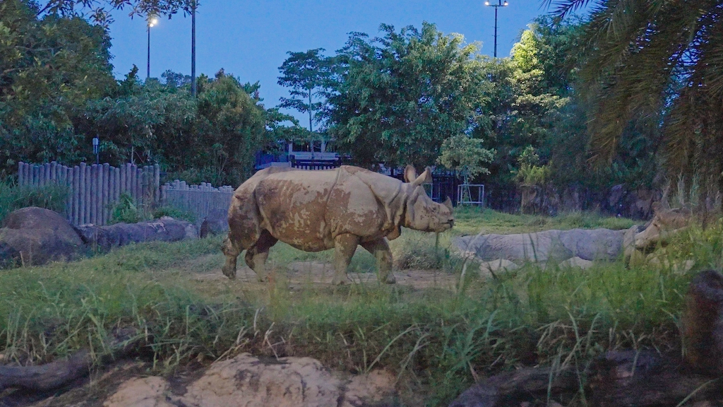 My favorite part of this trail or maybe my favorite of the whole Night Safari is the Indian Rhino:
