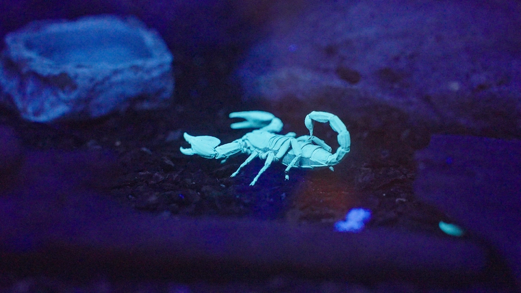 This trail also has a unique CAVE displaying many cave dwelling animals. Check out this glowing scorpion: