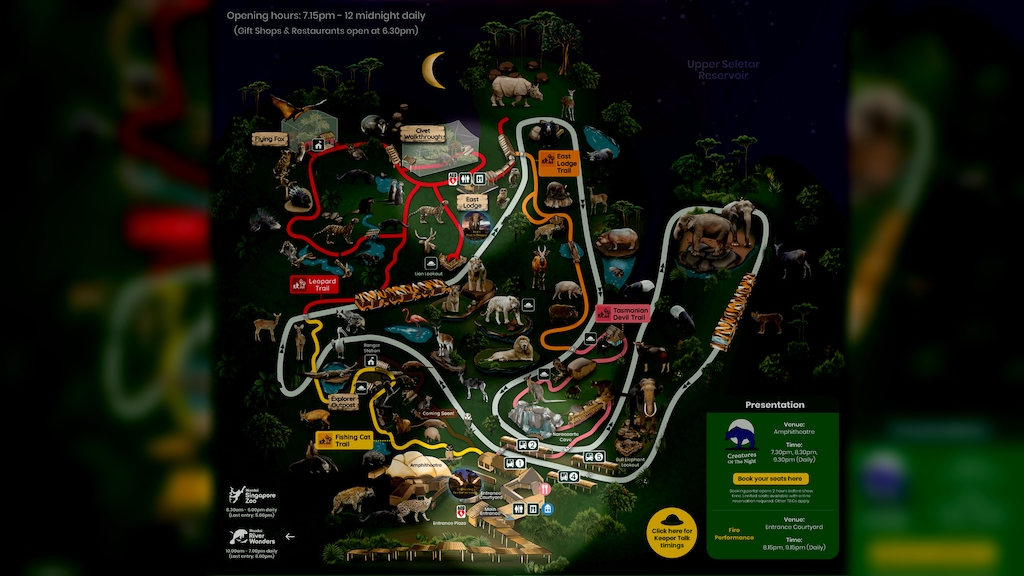 In this post I’ll be sharing the BEST Night Safari itinerary. If you dont want to waste time queueing and want to see everything, this route is perfect for you.