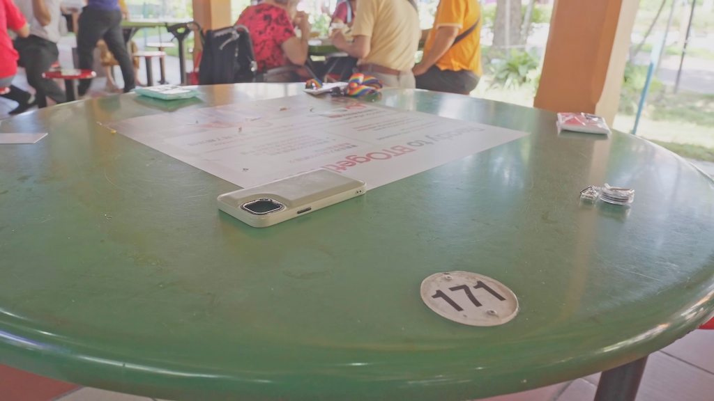 Especially at hawker centers, people would first look for empty seats, CHOPE it by leaving an item on the table, then they’ll go buy their food. Thats why you’ll find often items such as tissue packet, company lanyards, umbrellas, and water bottles laying on tables with no one sitting there. It’s perfectly normal!